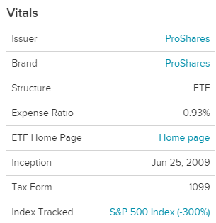 SPXU는 S & P위원회가 선정한 500 개의 대형 및 중형 미국 기업의 시가 총액 가중치 지수에 (-3 배) 노출을 제공합니다.