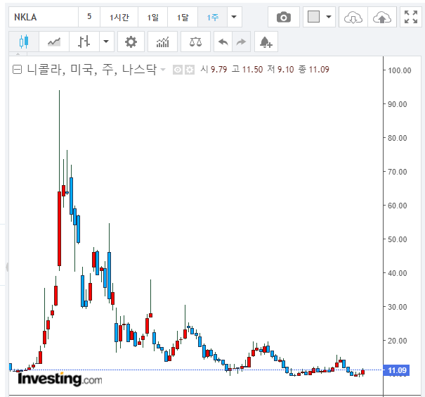 니콜라의 주가가 18%나 급등하였습니다. 사기 기업 논란으로 트레버 밀턴 CEO가 사임한 이후, 니콜라의 주가는 크게는 아직 우하향 추세이긴 하지만, 오늘의 급등은 의미가 있는 것 같습니다.