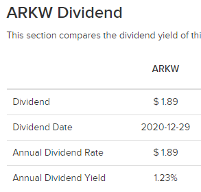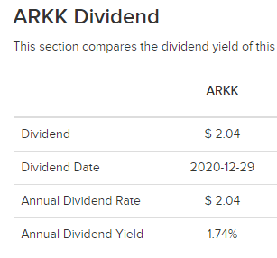 그렇습니다. ARK ETF들인 ARKK, ARKW, ARKQ 등의 배당일이 12월29일인 것 입니다.(작년기준)