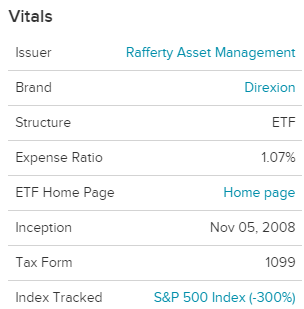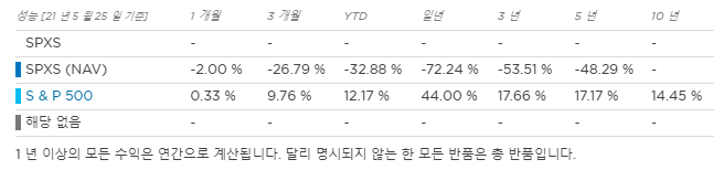 SPXS (Direxion Daily S&P 500 Bear 3X Shares) 3배 인버스 ETF