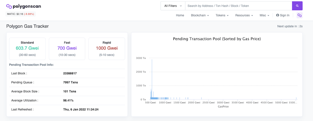 이더리움 체인은 1TX = 50~100달러가 드는 일도 드물지 않기 때문에 폴리곤이 최대 1TX = 1달러 상당의 1000Gwei까지 치솟았다고는 하지만, 상대적으로는 저렴한 부류라 할 수 있지만 NFT 대여 프로토콜인 Double Protocol이 AlphaPass의 발매를 연기하는 등의 영향을 미치기 시작하고 있어 우려하고 있다.