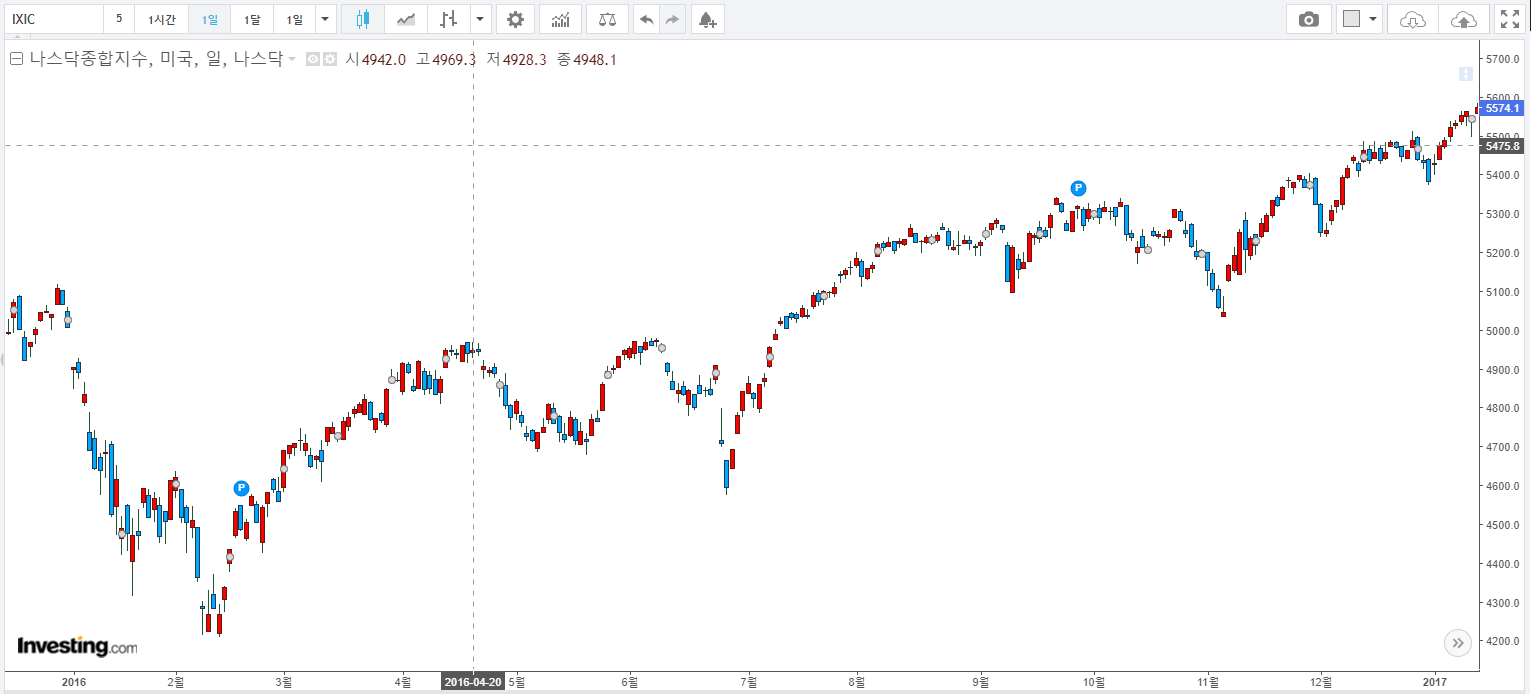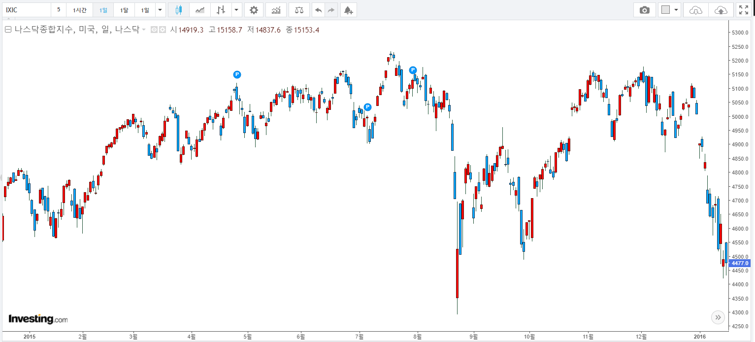 2015~2016년 약 2년간은 변동폭이 매우 크고, 사실상 2016년에는 2015년에 7월 형성된 고점으로부터, 지수가 6% 정도 상승한 것에 그쳤습니다.