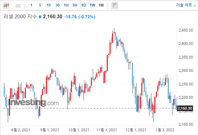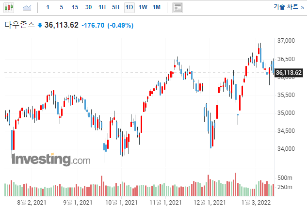 미국 시장 주가 동향) Biogen 6.7% 하락!, 도어대시 2% 하락!, PayPal 2.2% 하락_22년1월13일