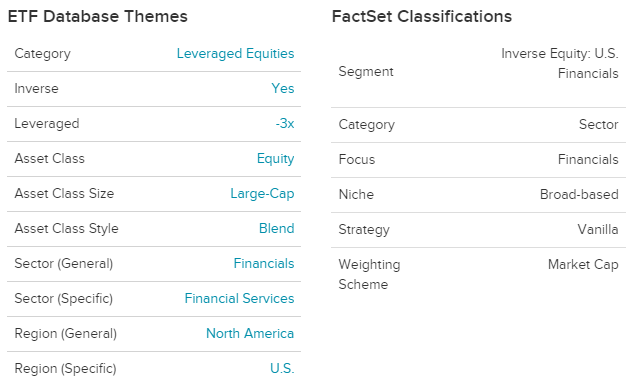 FAZ는 미국 대형 금융 회사의 시가 총액 가중 지수에 3 배 역 노출을 제공합니다.