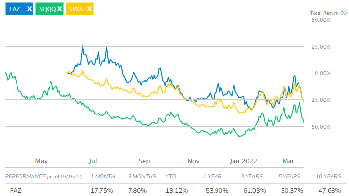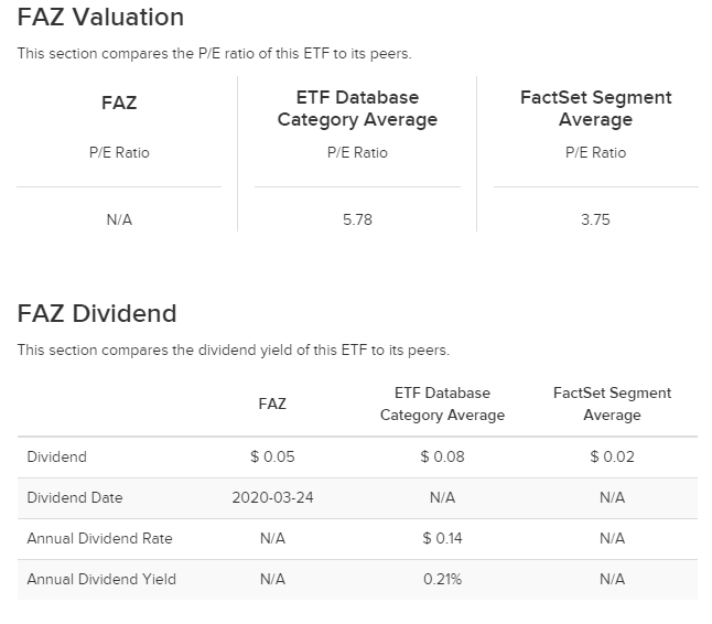 FAZ (Direxion Daily Financial Bear 3X Shares) 3배 인버스 ETF