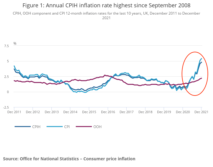 또, 미국에서 약 40년만의 인플레율 고공행진이 문제시되는 가운데, 영국의 인플레율(소비자 물가지수:CPI)도 전년동월비 5.4%상승해, 1997년 1월부터 시작된 30년간의 통계 수치에서 과거 최고에 이르렀다.