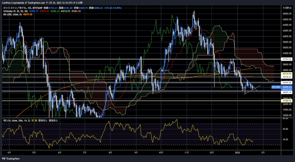 여전히 아슬아슬한 라인상에 있어 요경계 존이지만, 하락이 주춤하고 있는 것처럼 보여, 보합세를 웃돌 수 있으면 반등 기운도 높아질까.