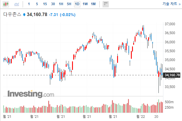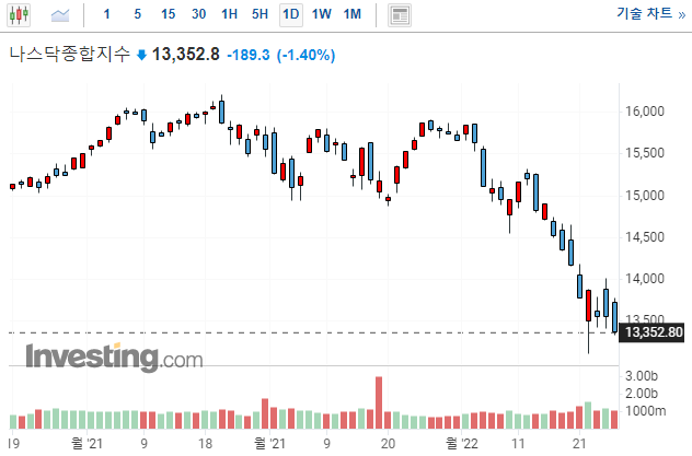 시장은 장 초반 새벽 4시경 미국 금리 동결에 환호하며 상승을 시작하였으나, FOMC기자회견 이후, 파월 연준 의장이 연내 QT를 시행에 의지를 다시 한번 확인하면서, 하락 마감하였습니다.