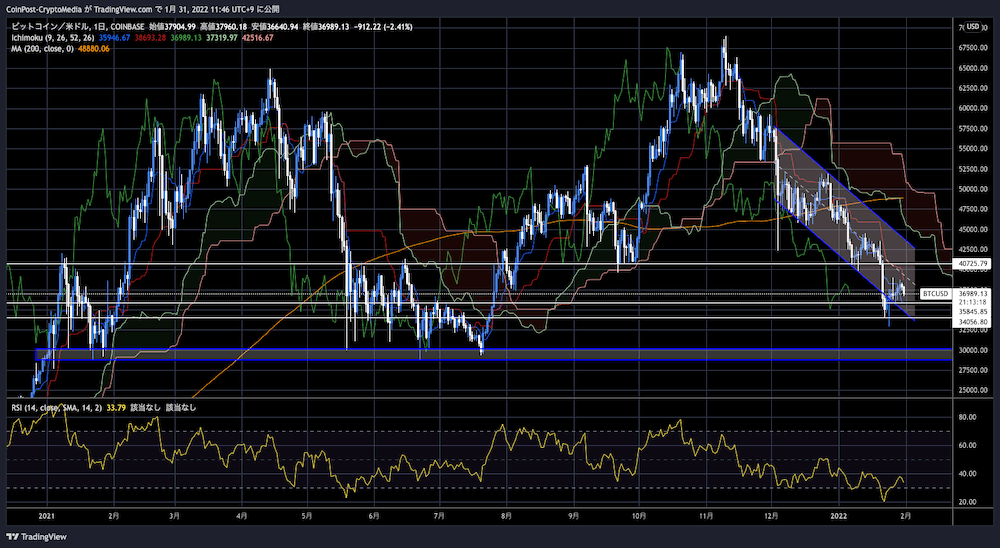 해외 암호화폐 전문채널 코인포스트에 따르면, 이번 주 초 31일 암호화폐 시장에서 비트코인 가격은 전날보다 2.3%인 37,000달러