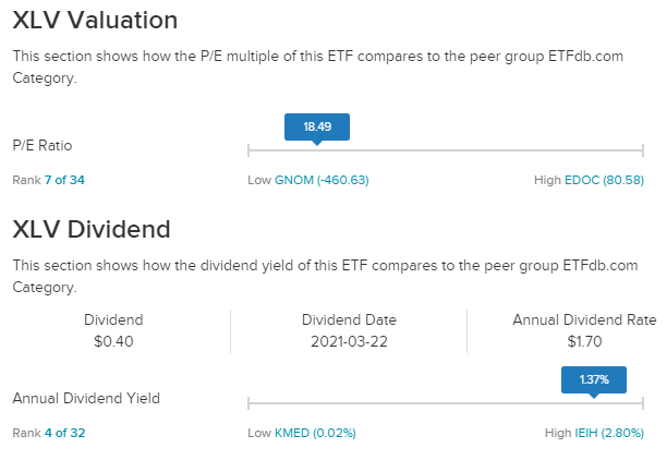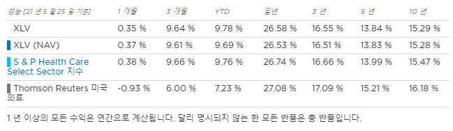 XLV는 S&P500 지수 내에서 시가 총액에 따라 가중 된 건강 관리 주식을 추적합니다.