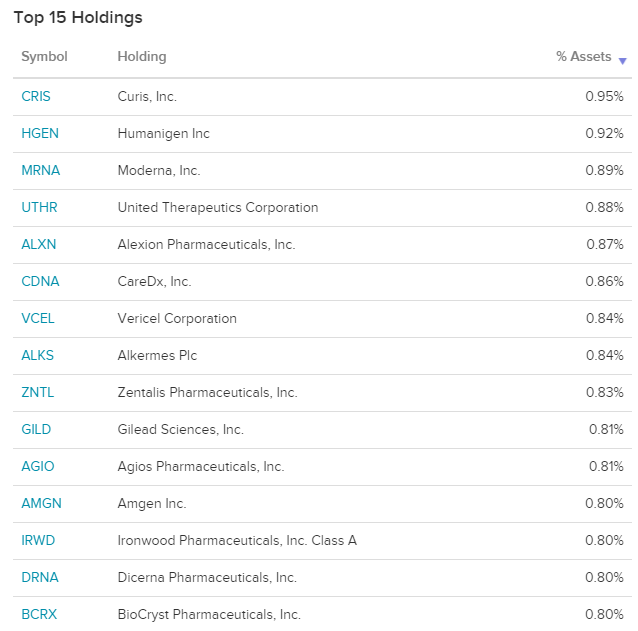 XBI는 미국 생명 공학 주식의 동일 가중치 지수를 추적합니다.