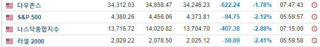2월 10일 ~ 11일 미국 3대 지수가 수도꼭지 틀어놓은 것 마냥 콸콸 쏟아지고 있습니다. 하락의 이유는 러시아와 우크라이나 사이에 전쟁이 일어날 것만 같은 불안 때문인데요... 기사를 찾아보시면