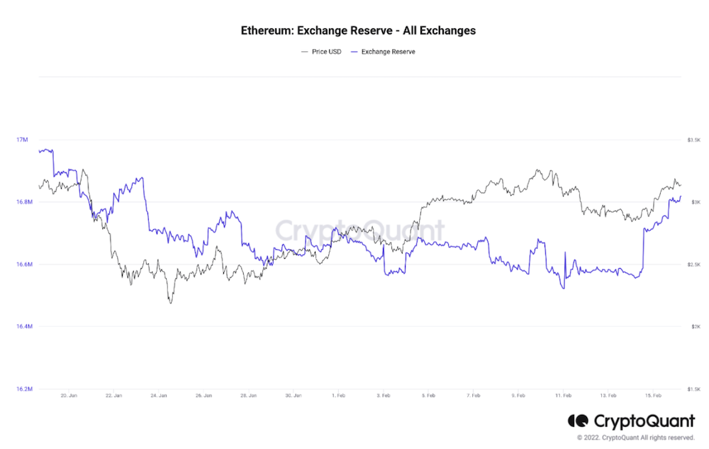 Exchange Netflow의 데이터에 따르면 과거 며칠 동안 +350,000ETH가 초과 유입되었다. 최근에는, 미 금융 당국에 의한 금융긴축시사에 가세해 우크라이나 정세 긴박화에 수반하는 지위 악화의 영향으로, 금융시장 전체에서 매도가 선행하고 있다.