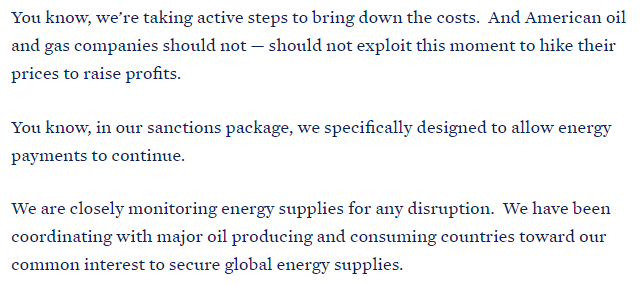 ※그렇다고, 유가 상승을 무작정 방치하면 안되겠죠? 이 부분에 대해서는 24일 바이든이 러시아 제재 긴급 연설에서 미국에서 관리하는 전략비축유를 시중에 공급하므로서 어느정도 유가를 안정적인 수준으로 유지하겠다고 발표하였습니다.