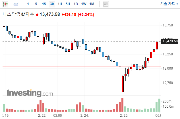 그러나, 미국의 3대 지수는 폭발적인 상승을 하면서,