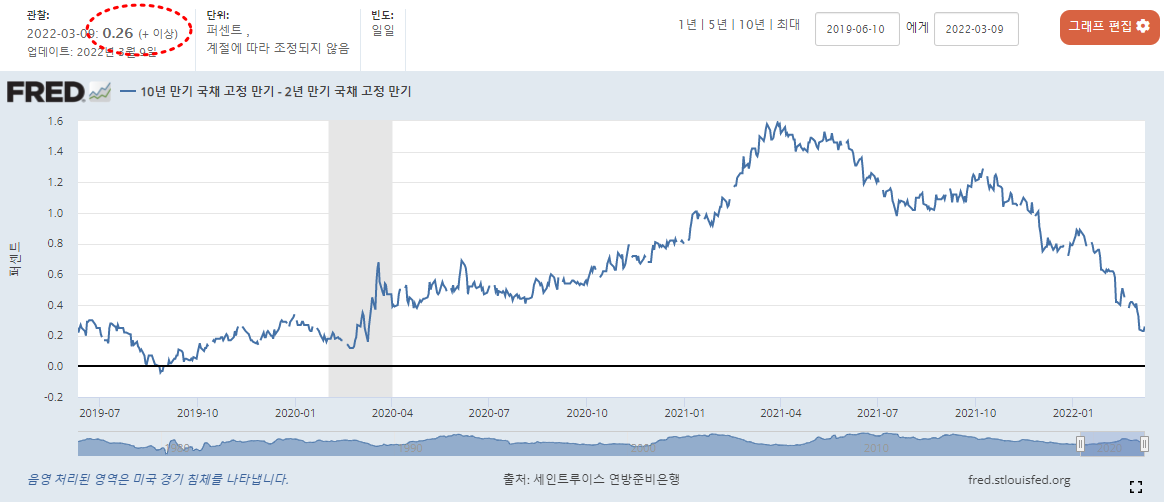미국 국채 장단기 금리차