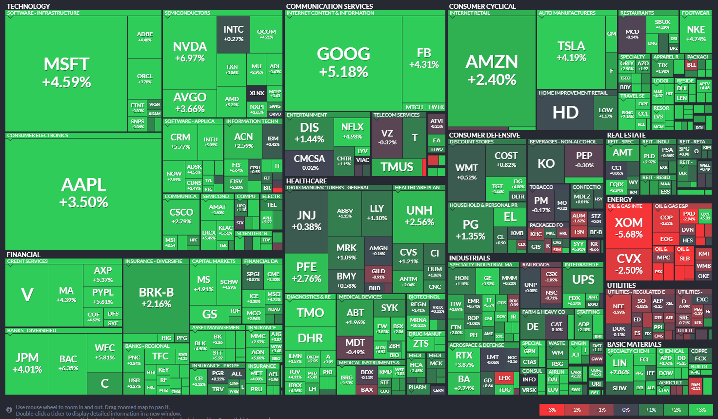 다우 +2.00% / 나스닥 +2.57% / S&P500 +3.59% / 러셀 2000 +2.73%