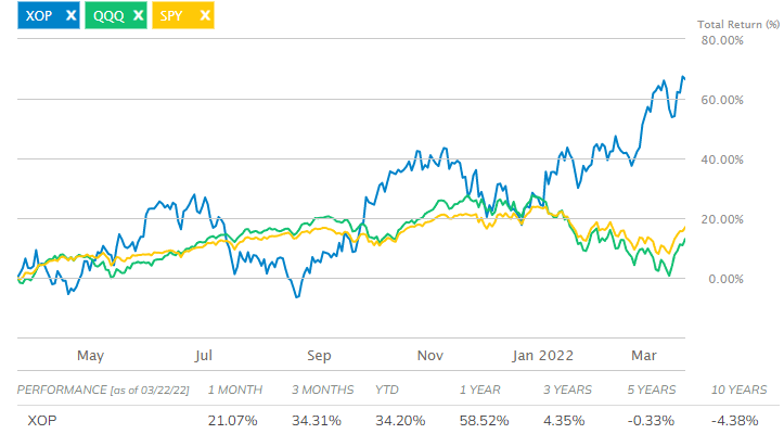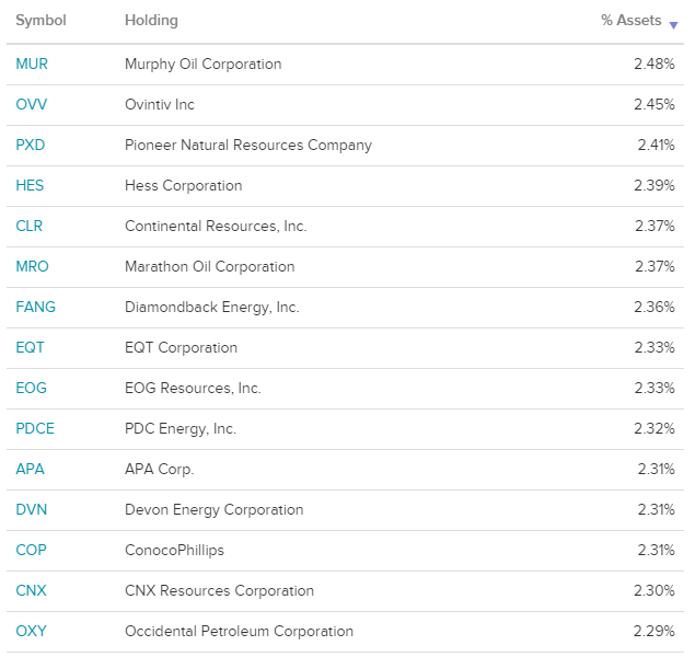 XOP는 미국 석유 및 가스 탐사 및 생산 공간에있는 기업의 동일 가중치 지수를 추적합니다.