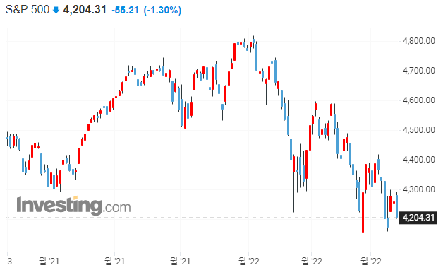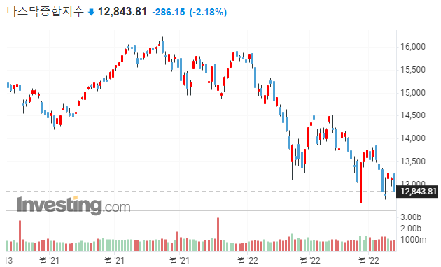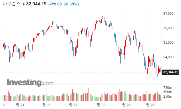 에너지와 유틸리티 외에 전 섹터가 하락. 특징적인 것은 금리 인상이 호재로 작용하는 은행주까지 전부 하락하는 모습을 보였다는 것.