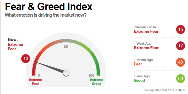 3월11일 15이었던 지수는 13로 소폭 하락하였습니다.