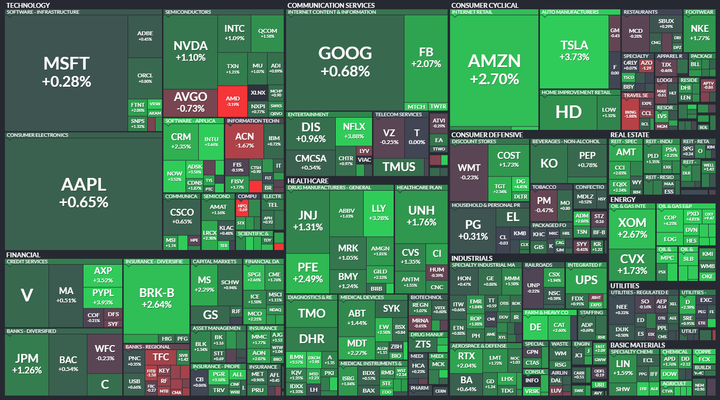 다우 +1.23% / S&P500 +1.23% / 나스닥 +1.33% / 러셀 2000 +1.62%