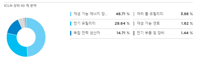 ICLN은 청정 에너지와 관련된 사업에 참여하는 가장 유동적 인 기업 30 개의 시가 총액 가중치 지수를 추적합니다.