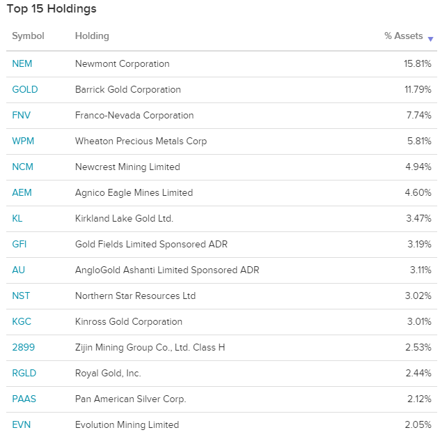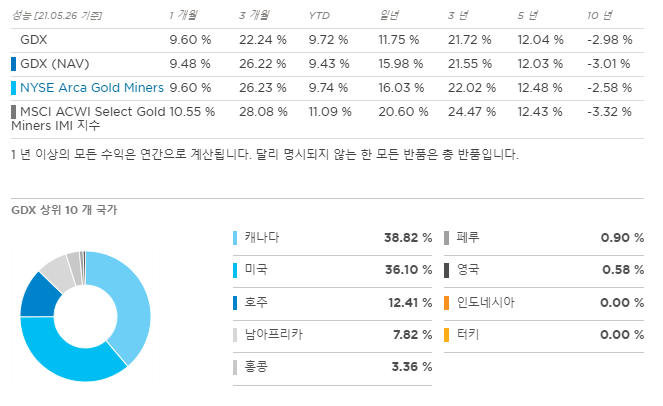 GDX는 글로벌 금광 회사의 시가 총액 가중치 지수를 추적합니다.