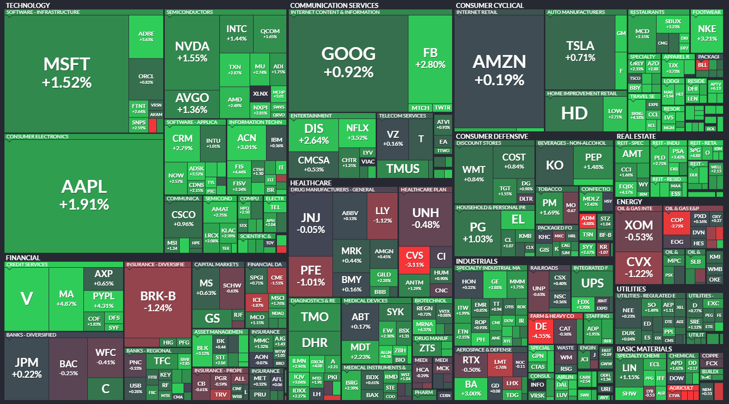다우 +0.97% / S&P500 +1.23% / 나스닥 +1.84% / 러셀 2000 +2.55%