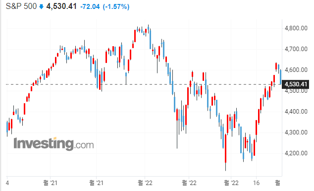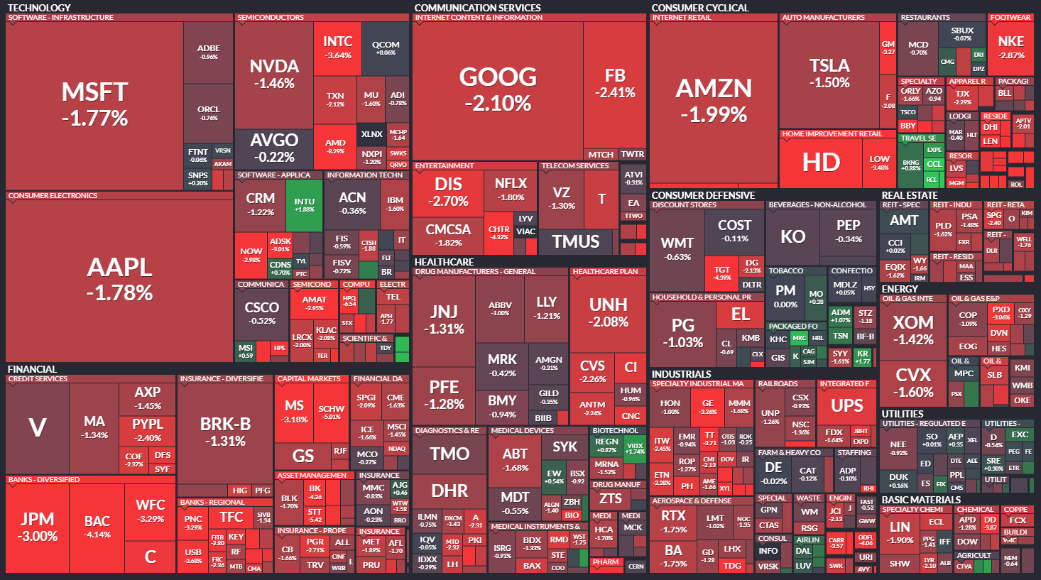 다우 -1.56% / S&P500 -1.57% / 나스닥 -1.54% / 러셀 2000 -0.94%