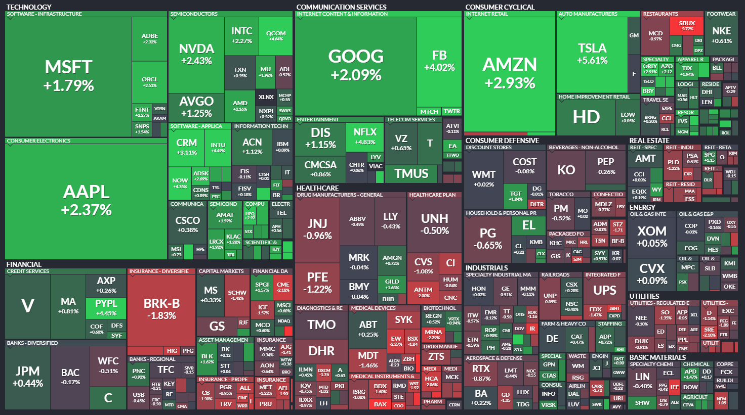 다우 +0.30% / S&P500 +0.81% / 나스닥 +1.90% / 러셀 2000 +0.05%