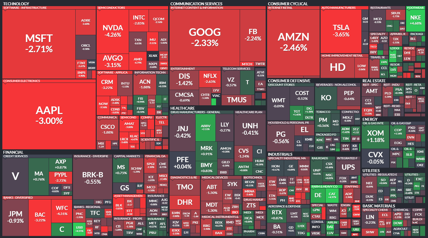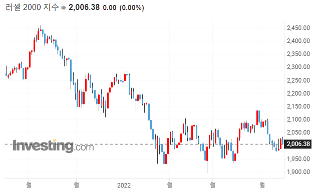 다우 -0.38% / S&P500 -1.21% / 나스닥 -2.14% / 러셀 2000 0.00%