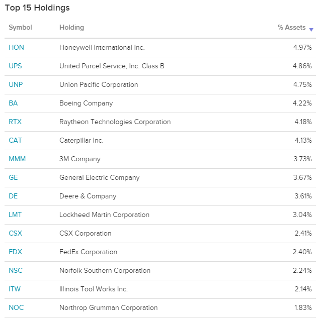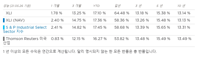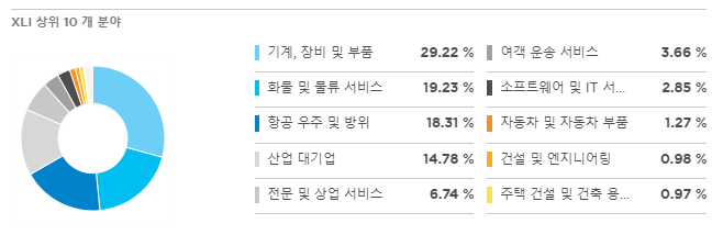 XLI는 S&P500에서 가져온 산업 부문 주식의 시가 총액 가중 지수를 추적합니다.