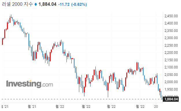 ▷현재 다우와 S&P는 직전 고점에 지지를 받는 모습이나, 나스닥과 러셀은 직전 저점에 걸쳐있는 모습을 보이고 있습니다. 러셀이나 나스닥의 모습을 볼때, 코로나19시기 실적없이 주가가 크게 올랐던 중소형 성장주와 실적이 꺾이는 기업들의 하락이 시장에 반영되고 있다고 볼 수 있습니다.