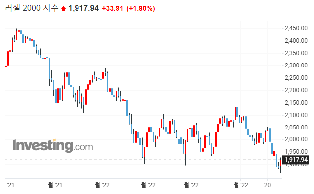 ▷현재 다우와 S&P는 직전 고점에 지지를 받는 모습이나, 나스닥과 러셀은 직전 저점에 걸쳐있는 모습을 보이고 있습니다. 러셀이나 나스닥의 모습을 볼때, 코로나19시기 실적없이 주가가 크게 올랐던 중소형 성장주와 실적이 꺾이는 기업들의 하락이 시장에 반영되고 있다고 볼 수 있습니다.