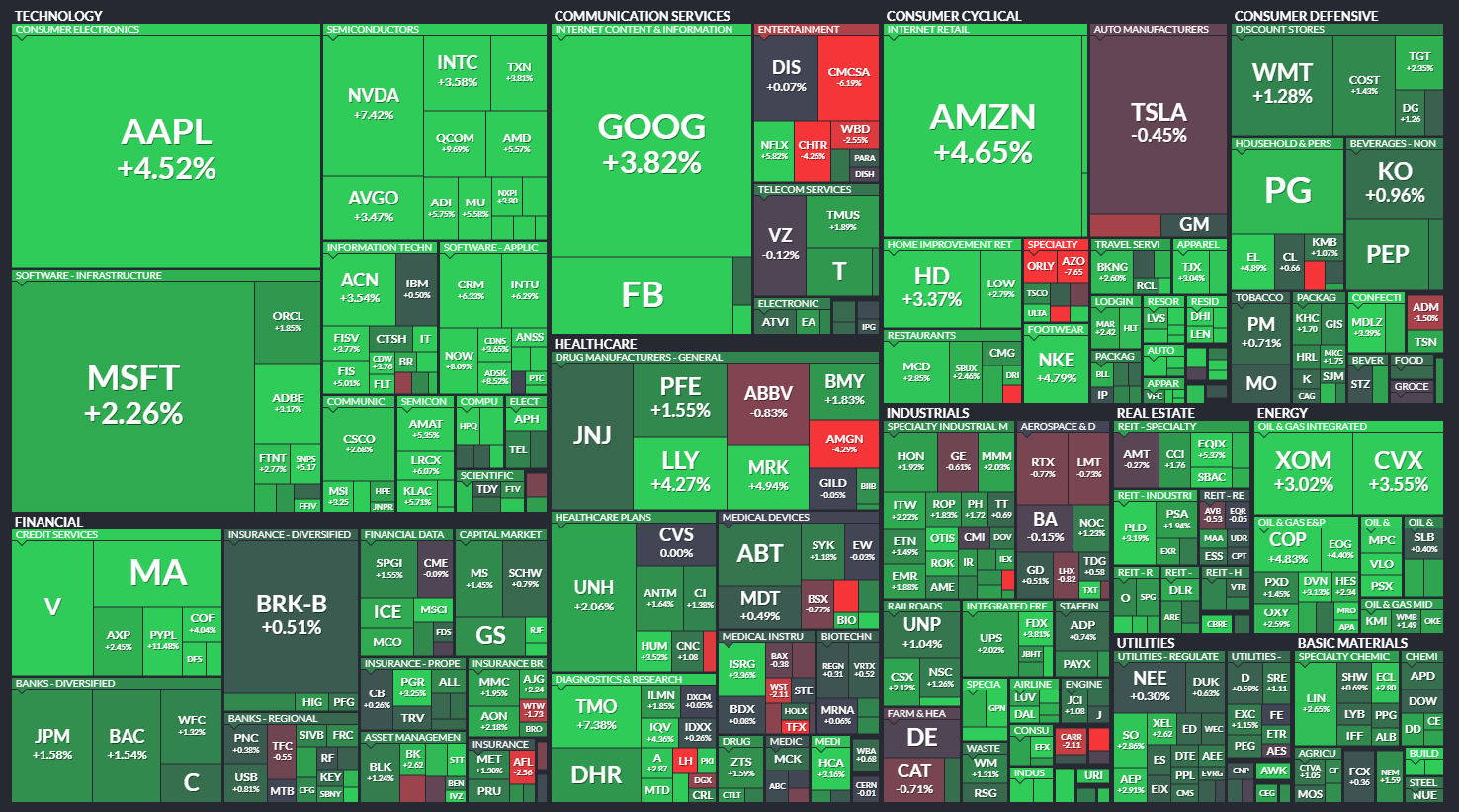 다우 +1.85% / S&P500 +2.47% / 나스닥 +3.06% / 러셀 2000 +1.80%