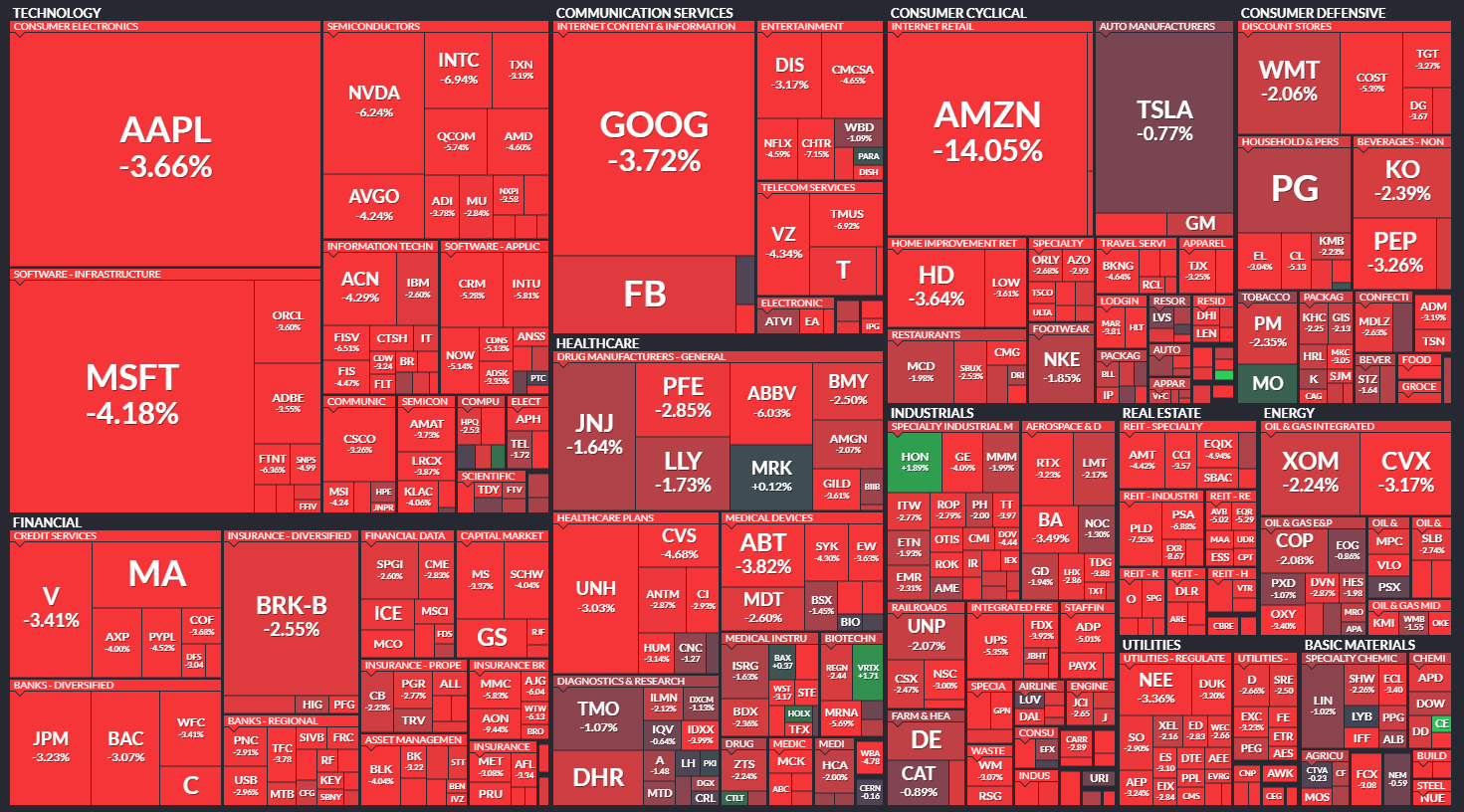 다우 -2.77% / S&P500 -3.63% / 나스닥 -4.17% / 러셀 2000 -2.81%