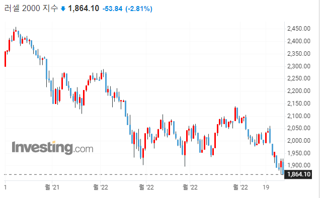 ▷현재 다우와 S&P는 직전 고점에 지지를 받는 모습이나, 나스닥과 러셀은 직전 저점에 걸쳐있는 모습을 보이고 있습니다. 러셀이나 나스닥의 모습을 볼때, 코로나19시기 실적없이 주가가 크게 올랐던 중소형 성장주와 실적이 꺾이는 기업들의 하락이 시장에 반영되고 있다고 볼 수 있습니다.