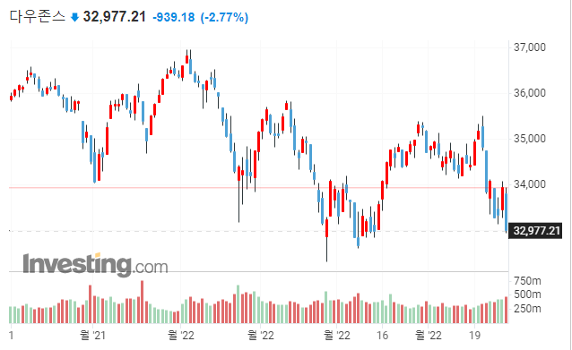 → 저 같은 개인 개미 투자자로서 느끼기에는 금리나 전쟁, 원자재 상승 등보다 더 걱정되는 부분은 빅테크들의 실적이 꺾이면서 일어날 투자자들의 투자심리의 붕괴입니다. 특히나 지수들의 현재 위치가 기술적 분석상에서 지지선을 깨기 직전이기 때문에 만약 이 지지선이 붕괴되는 경우 일어날 수 있는 투매에 대해서도 마음의 준비가 필요합니다.