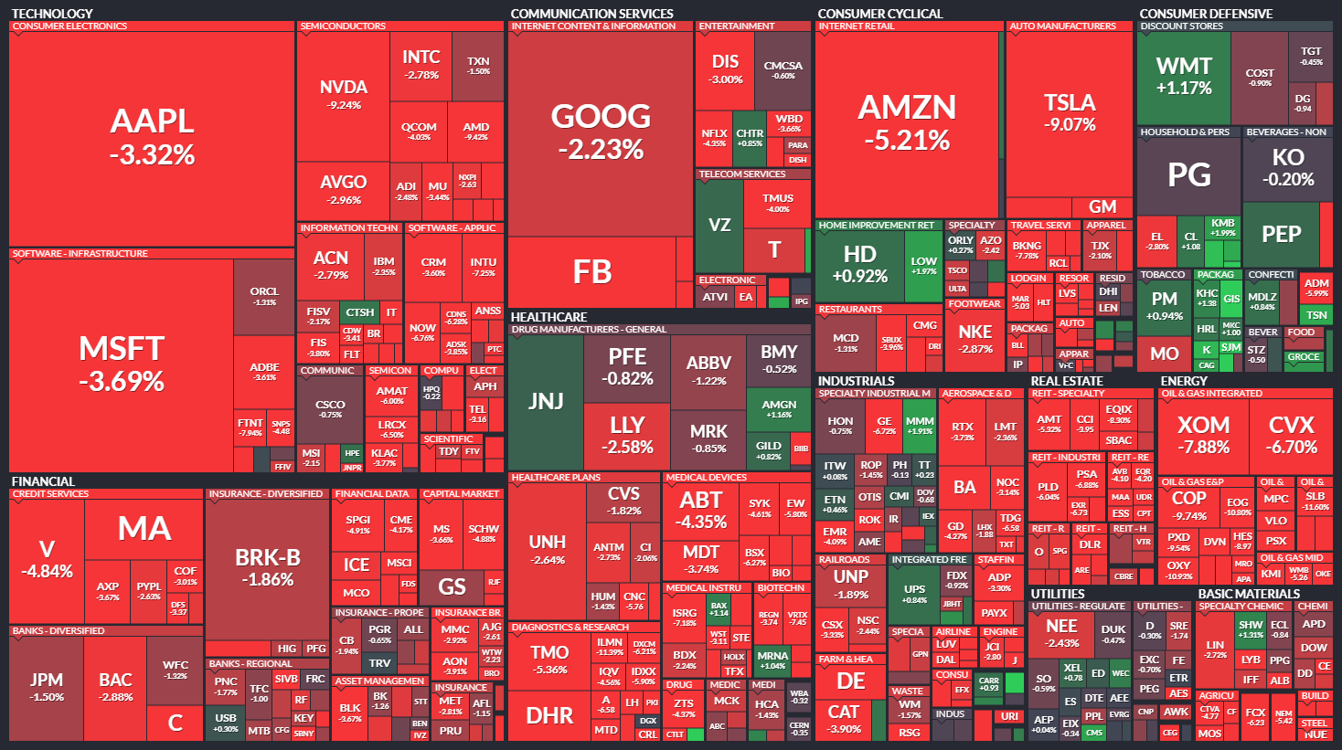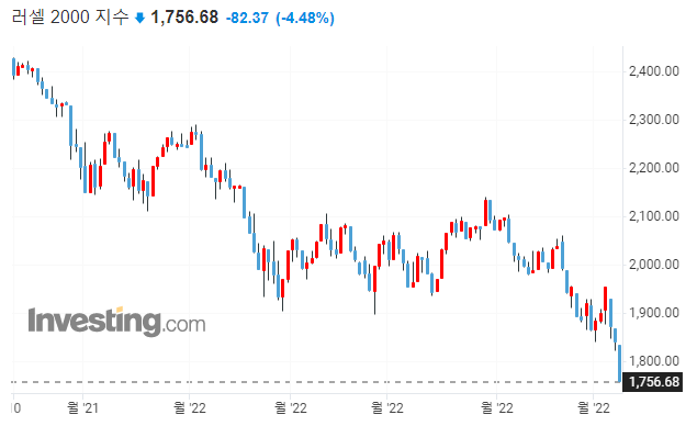 다우 -1.99% / S&P500 -3.20% / 나스닥 -4.29% / 러셀 2000 -4.48%