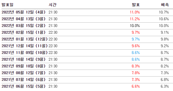 5. 5월 11일 근원 소비자물가지수, 소비자물가지수 (CPI)