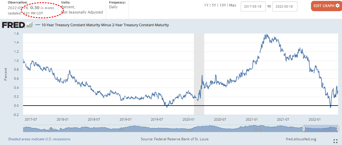 0.30%마감 (22년 4월 1일 장단기 금리차 역전)