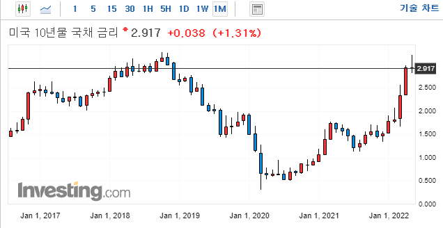 개인적인 의견이지만, 미국 10년물 국채 금리가 3.0을 넘어 크게 상승하면서, 주식 시장에 큰 충격을 준 것으로 보입니다. QT일정이 발표되면서, 국채 매도세가 더 강해진 것으로 보입니다. 미국 10년물 국채 금리가 급등하고 있는데요. 이미 국채 금리가 18년도 고점 이상 상승한 만큼, 확실히 금리 2%와 QT 1500억 달러 정도는 시장이 반영하고 있다고 보입니다. 하지만, 이번에 예정된 QT는 2200억 달러에 육박하므로, 국채금리가 추가로 더 상승할 여지가 있는데요. 위에서도 언급드렸다 싶이 국채금리의 상승이 무조건 악재인 것은 아니므로 대응이 더 중요하리라 생각됩니다.