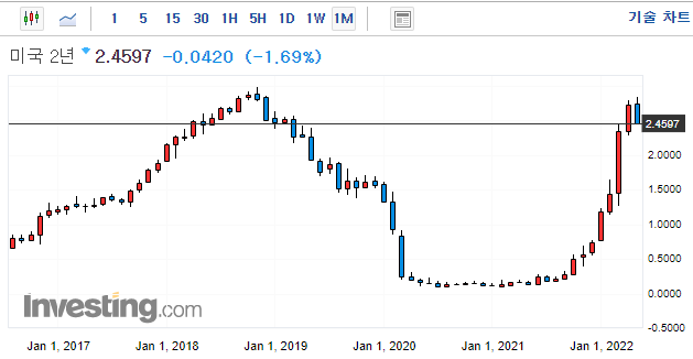 단기 금리(2년 물) : 기준 금리에 크게 영향을 받습니다. 올해 미국 금리가 1.9% 예상되므로 유 사치까지 상승