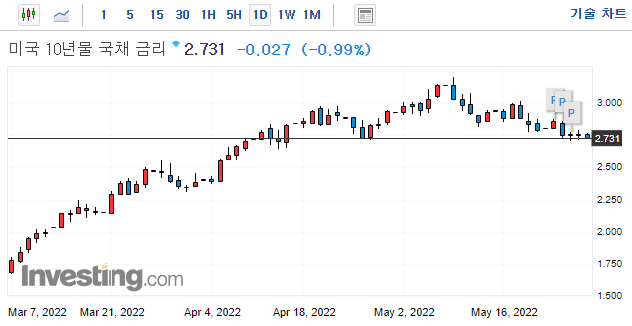 2022.05.25 - [주식 정보/미국) 시황 체크] - 미국 시황) 힘겹게 저점을 지키고 있는 미 3대 지수! _22년5월25일