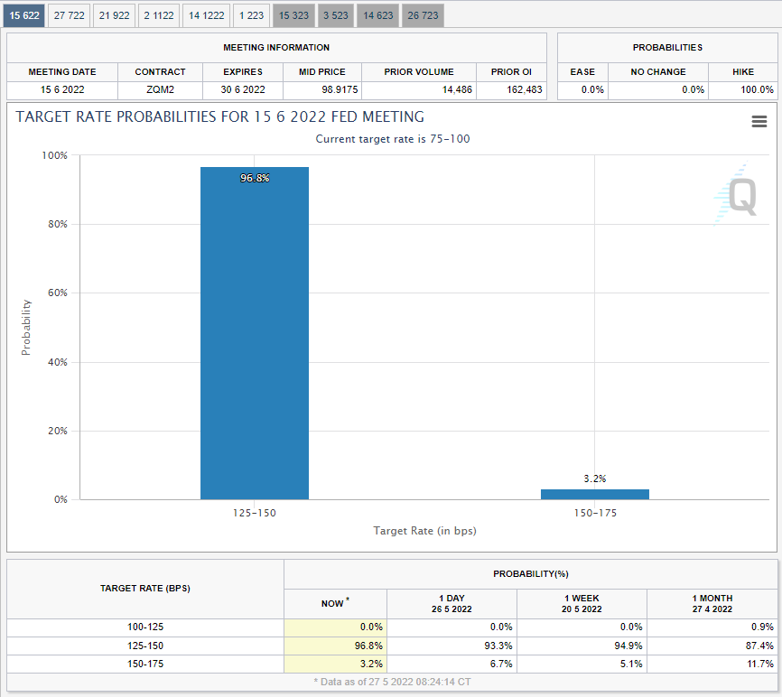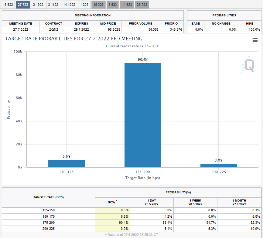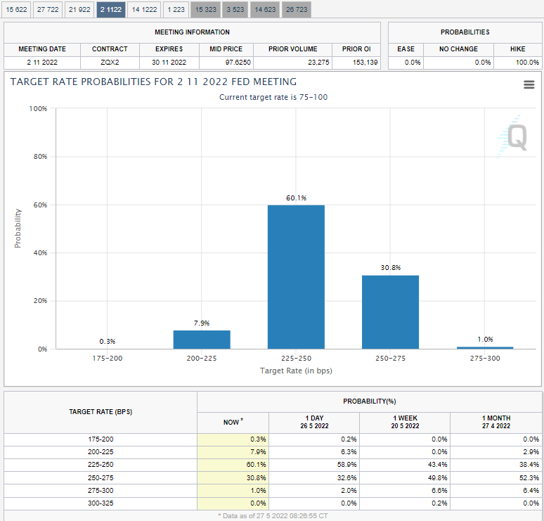 현재 FedWatch를 통해서 살펴보면 6월,7월 50bp금리 인상 가능성이 높은데 비해서 9월,11월은 25bp금리 인상 가능성이 높은 상황입니다만, 향후, 경기 침체를 우려하여 Fed에서 금리 인상 속도를 둔화 시킬 수 있다는 점도 투자에 중요한 포인트가 될 것 같습니다.