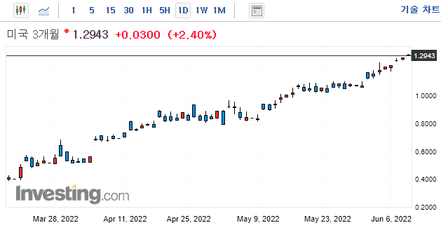 → 5월13일 현재 장단기 금리 가격들이 하락하고 있습니다.(=채권 가격의 상승) 채권 시장에 움직임만을 보면, 시장은 금리 인상으로 인한 경기 침체를 우려하며, 안전자산인 채권에 대한 투자가 증가하는 것으로 보입니다.