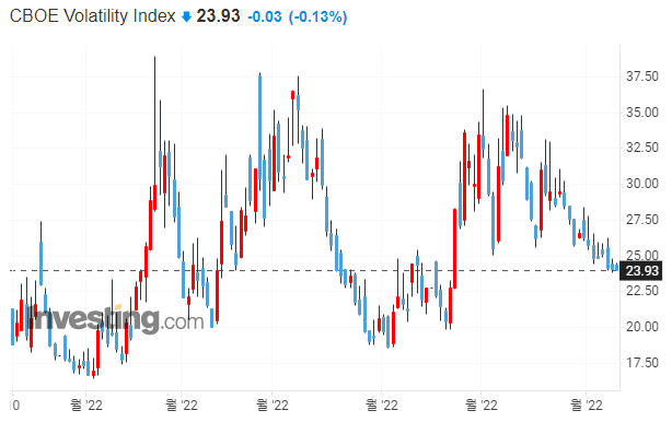 → 아직 VIX지수가 충분히 하락하지 않았습니다. VIX는 변동성을 의미하므로, 아직 시장은 하락에 대한 불안감을 가지고있는 것으로 보입니다.