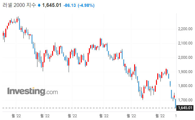 다우 -2.42% / S&P500 -3.25% / 나스닥 -4.08% / 러셀 2000 -4.98%
