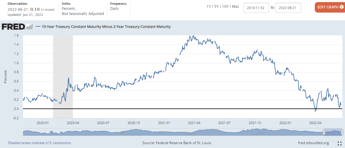 2022.06.20 - [주식 정보/미국) 시황 체크] - 미국 시황) 장단기 금리차 축소, 시장은 경기 침체 우려 _22년6월18일