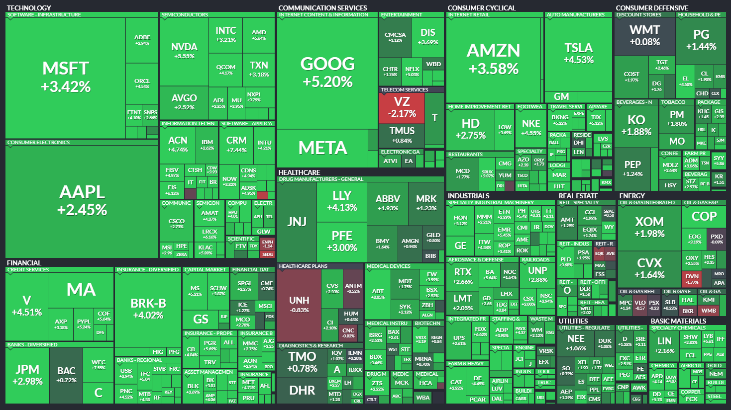 다우 +2.68% / S&P500 +3.06% / 나스닥 +3.34% / 러셀 2000 +3.16%